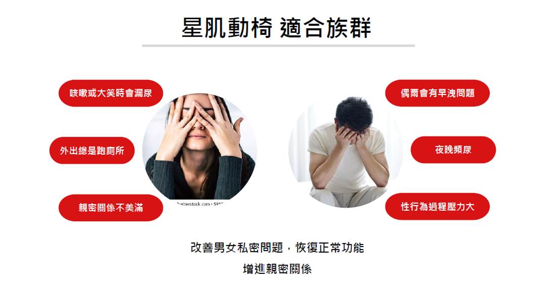 A:星肌動椅30分鐘療程可於短時間內直接刺激肌肉,進行2萬~3萬次超極限肌肉運動,並維持穩定收縮,這是一般骨盆底肌訓練(如凱格爾運動、訓練球)難以達成的,同時可避免姿勢不正確、無力等問題。